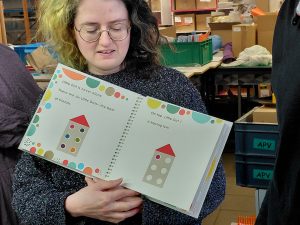 La matinée a d’abord permis de comprendre les principes de ce format – accessibilité de l’image, niveaux de détail, pointage, zoom, animations, voix, sons intégrés, etc. – puis s’est prolongée par une visite des ateliers de Les Doigts qui Rêvent, offrant aux participants une immersion dans les coulisses de la fabrication de livres adaptés : travail des matières, techniques de gaufrage, façonnage, contrôles qualité. Un temps particulièrement apprécié, qui a permis de faire le lien entre innovation numérique et savoir-faire artisanal.